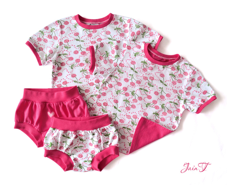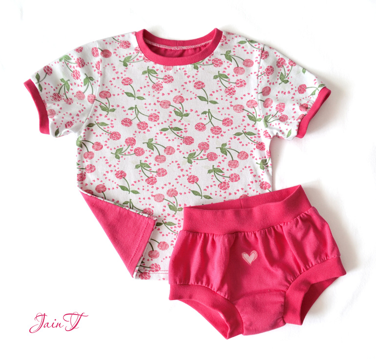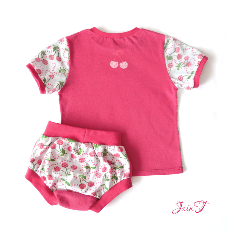 Пара футболок и пара трусиков из кулирки х/б "вишенки" и компаньона, отделка - рибана.