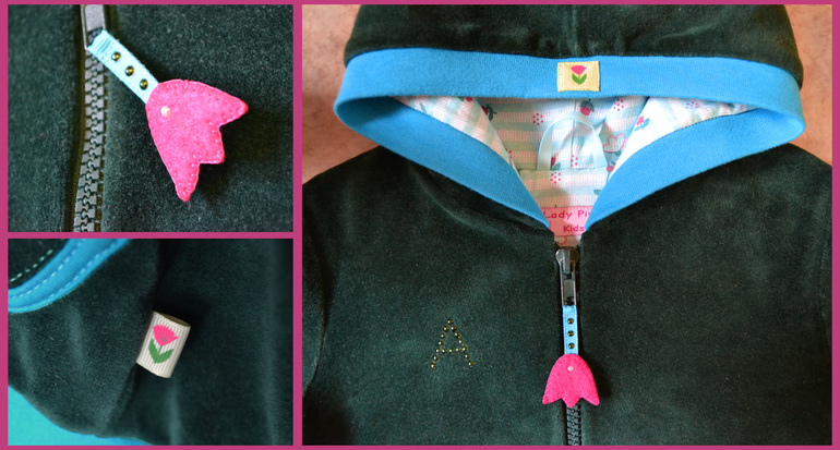 На подкладе - кулирка х/б, отделка - рибана, декор: фетр, стразы, нашивки и репсовая лента.