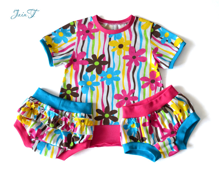 Футболка, саруэлы и пара трусиков из кулирки х/б, отделка - рибана.