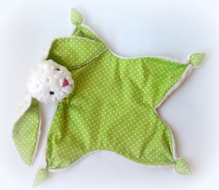 Такую забавную игрушку-салфетку кладут рядом с мамой во время кормления. Ткань пропитывается маминым запахом, и это помогает крохе чувствовать себя комфортноОт ушек до ножек 45 см