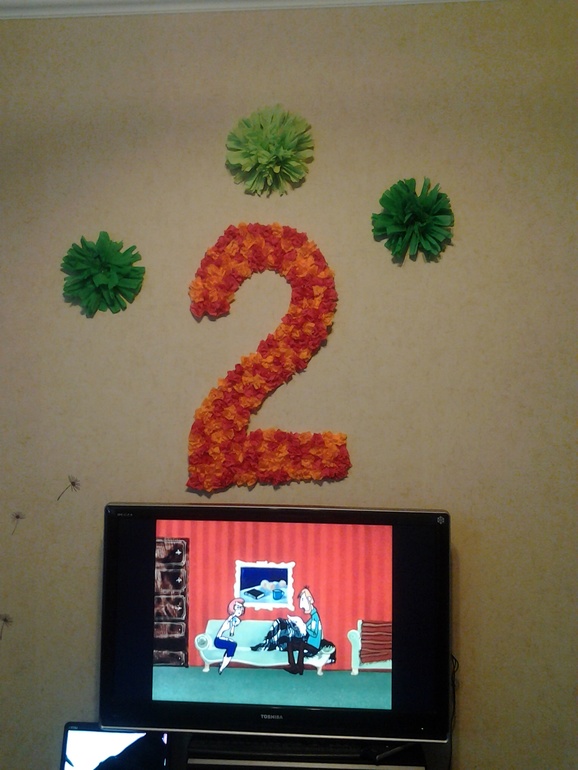 Изделия из бумаги, папье-маше, квиллинг.Сделала двоечку на день рождения своей доченьки, размеры внушительные детям и гостям понравилось!))))