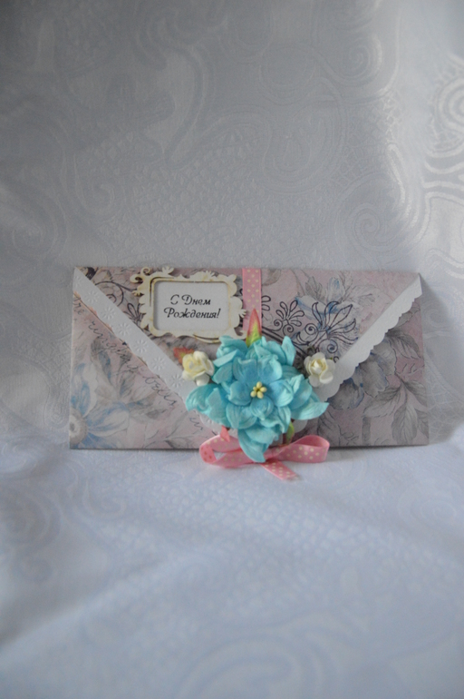 Всем здравствуйте! Вот такой сделала конверт для денежного подарка. Внутри поздравление с Днем Рождения.