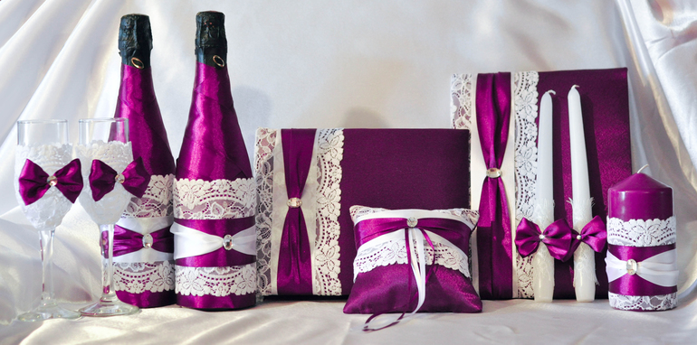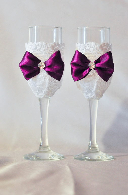 Декор, витражи.Предложила подружке сделать набор для свадьбы. Помнят ручки то! Невеста счастлива, а еще счастливей я, времени было 5 дней. К слову, к своей свадьбе я делала около 3х месяцев все. Лень, не хотелось, забивала и т.д... А тут как то рраз! И все на одном дыхании. И в несколько раз аккуратней, чем себе. Вылизывала каждую деталь. Цвета выбрали белый (ну а как же) и фиолетовый, точнее даже баклажановый. В общем, хвастаюсь :)