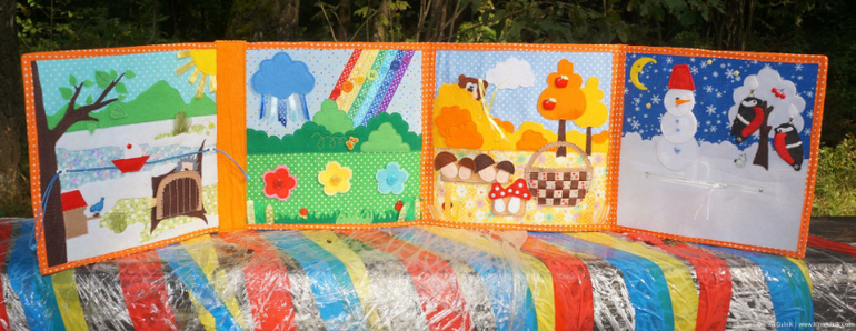 Вот под впечатлениями от ожидания осени сшила книжку-раскладушку для прекрасного мальчика Антона- сына моей подруги, которому скоро будет годик. Очень красочно-сочная осенняя книга для осеннего мальчика! Шила практически аналогичную книжку-раскладушку на тему «Времена года» (у мам эта тема не теряет актуальности), но с некоторыми дополнениями.
