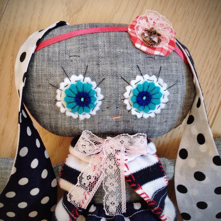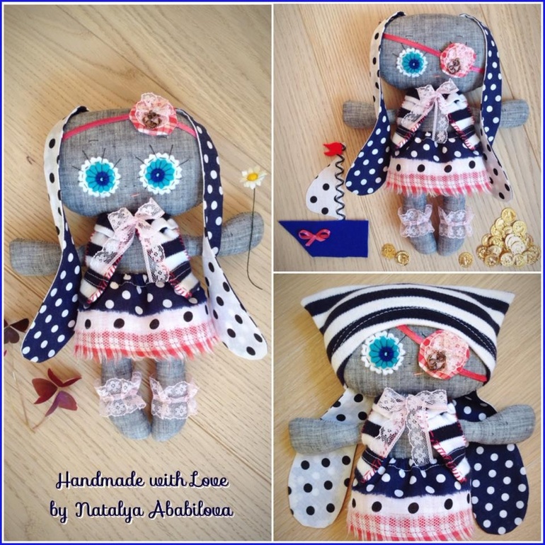 Катюша, я очень-очень рада!!! Если честно, она мне самой очень нравится, а особенно, эта задумка с повязочкой..., вообще, образ сложился и она гормонично сочетает в себе нежную девочку и дерзкую искательницу приключений...)))) на сегодня, это самая удачная работа по моим заинькам.. Спасибо за интересный заказ, было очень приятно шить для твоей дочурки!;)