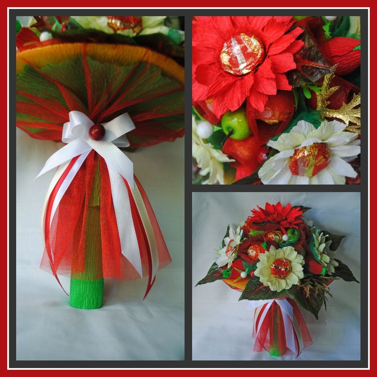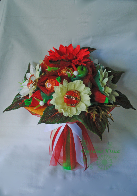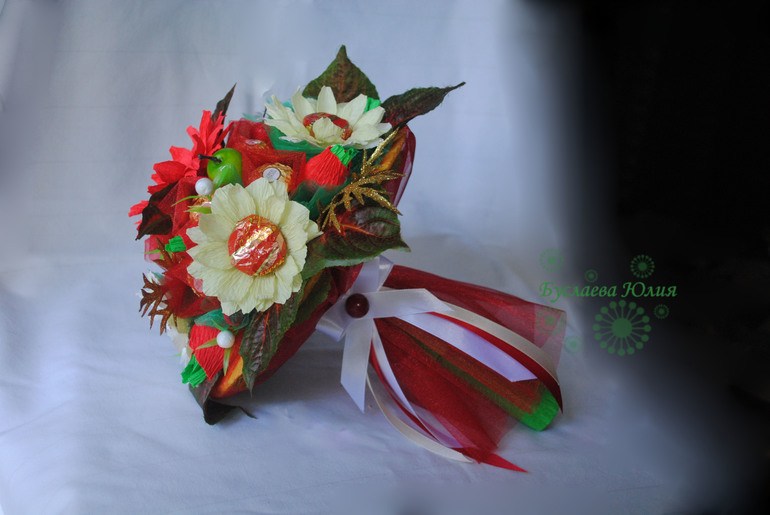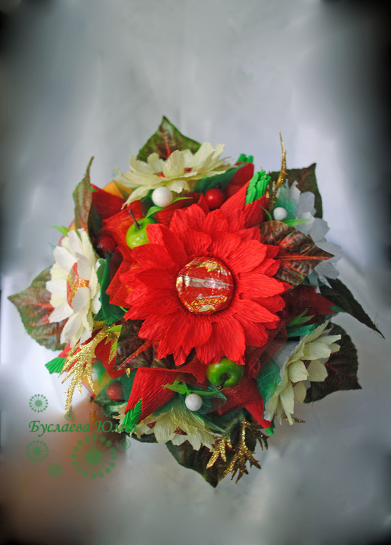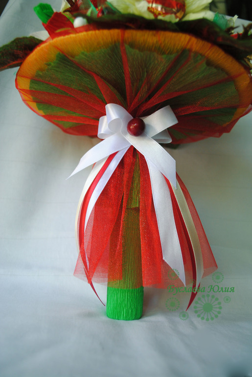 Юля, отличный букет, точно соответствует названию! и красная органза классно отливает на зеленой гофре, такой богатый цвет с переливами, практически хамелеон!