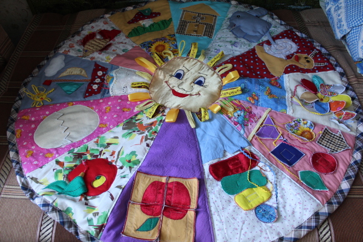 замечательный коврик! очень много труда! Интересно, что практичнее в использовании ребенком — коврик или книжка (или кубик) ? Мне кажется если развивающий предмет компактный, то это удобнее, пака изучаешь одну страницу или грань, то другие от этого не страдают , а в коврике мнутся, топчутся. Но я не видела, как дети пользуются такими игрушками, просто предполагаю. А что Вы скажете?