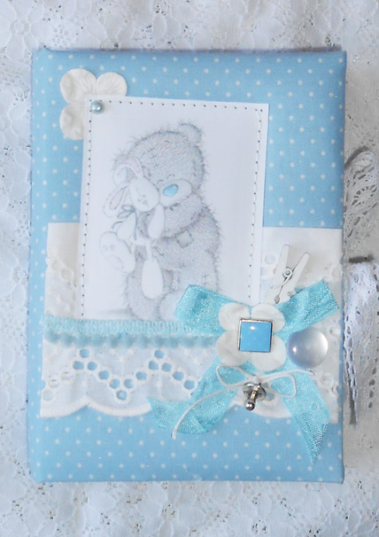 Вот такой голубой в горошек блокнот с пустышечкой и миленьким мишкой Тедди,люлблю я их.