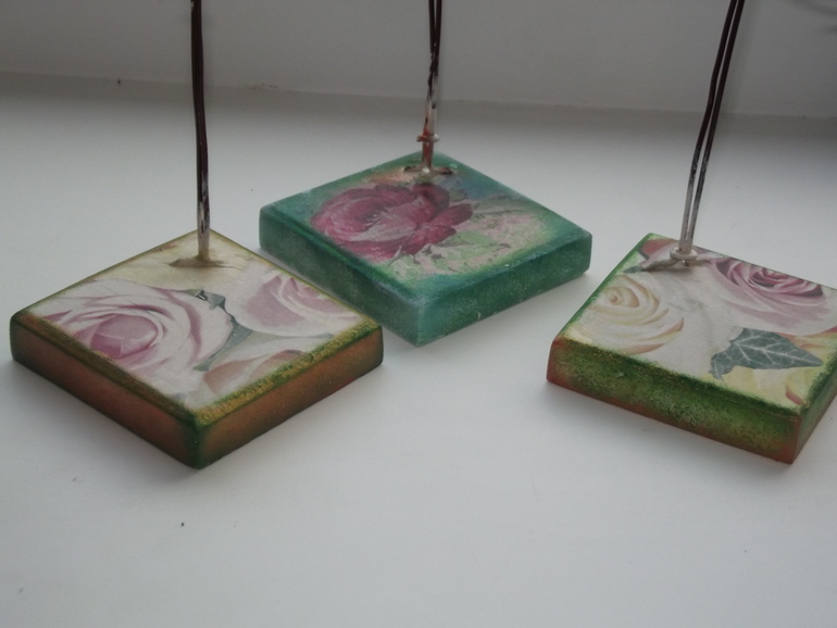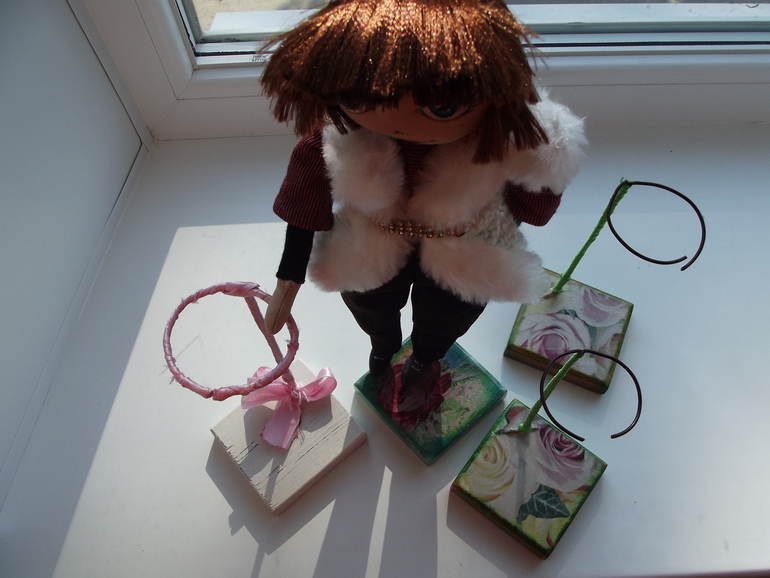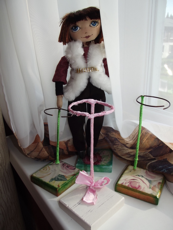 Муж сделал мне подставочки, как их украсить думала долго, и вот, что получилось.