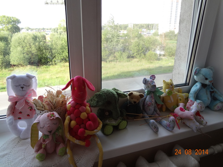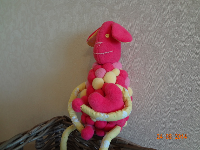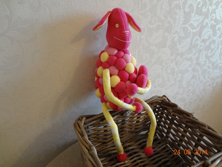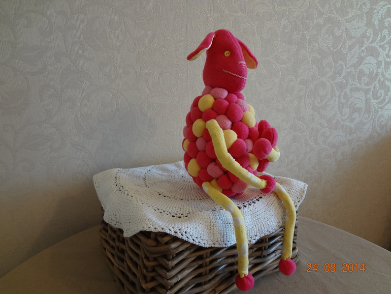 Игрушечный мир - животныеЗахотелось сшить что-нибудь необычного...и вот получилась такая овечка. Такая довольно большая 42см с ножками.Внутри ручек и ножек проволока и соответственно они гнуться,выкройку рисовала сама. Не знаю по времени сколько я ее шила ,но наверное больше не возьмусь,так что она единственный экземпляр. В ручках Доли держит сердечко. Если кому-нибудь она приглянулась могу обменять на что-нибудь...