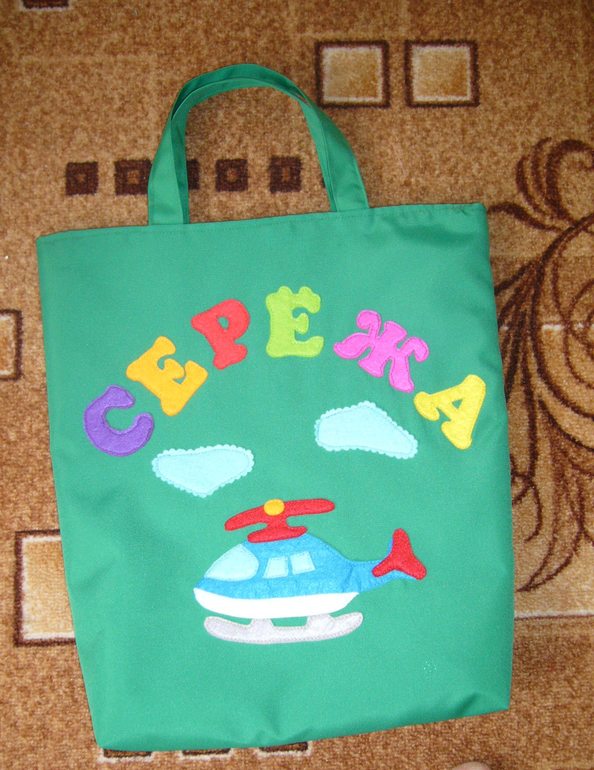 Шитье одежды, выкройки, ремонт одежды, шторы, швейные машины (уже приобретенные)У меня прямо бум на именные сумочки!!! Встречайте- новенькая,прямо из под иголочки)))).На этот раз для сыночка ББшечки Натальи.Предназначена для хранения запасных вещей или спортивной формы в шкафчике детского сада.По просьбе, сшила внутри сумки дополнительный кармашек для чешек.Одежду вашего ребенка никогда не перепутают и не засунут в чужой пакет)))),а также сумочка является эксклюзивной вещицей и второй такой же точно ни у кого нет.