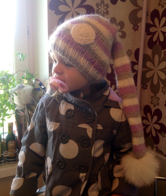 Спасибо за приятные слова)Наташа, схема простая. Высота шапки для наших девочек 20см. Вяжешь прямое полотно до 15см. Оставшиеся 5см — для убавления. Убавление: 1ряд — 2 петли вяжешь, 2 вместе провязываешь (так весь ряд)2, 3, 4 ряды — без убавления5 ряд — как 1-ый ряд (2 вяжем, 2 вместе)6 ряд — без убавления7 ряд — все петли этого ряда по 2 вместеПотом опять прямое полотно на длину буратинки, оставшиеся петли стянуть рабочей нитью. То есть не закрывать, а рабочую нить крючком продать сквозь все петли и завязать. По объему головы — количество петель от толщины нити. А крючком ты вяжешь? Я корону связала по схеме из журнала, поделюсь.