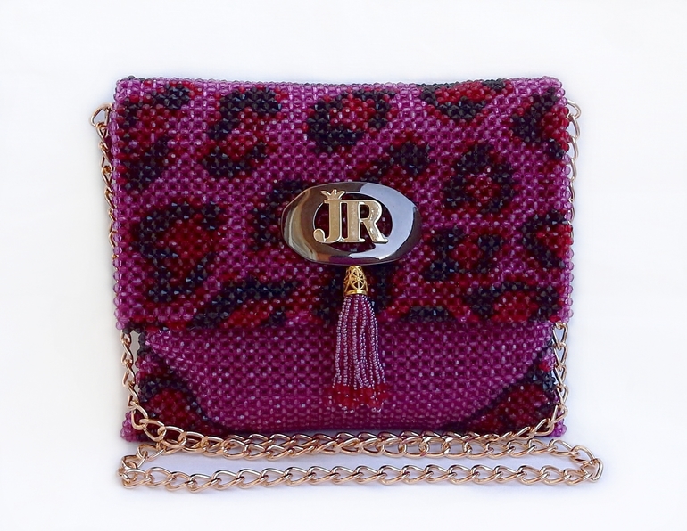 Сумочка "Pink Leopard". Сплетена из граненных бусин.