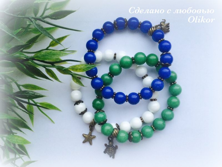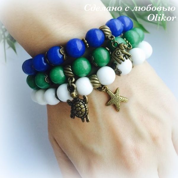 Бижутерия для слингомам. Слингобусы. Грызунки.Комплектик из трех браслетов цвета лета: белые облака, синее море и зеленая травка! Комплект универсальный - делала на заказ под трое часиков разного цвета, можно будет носить их в любом сочетании.