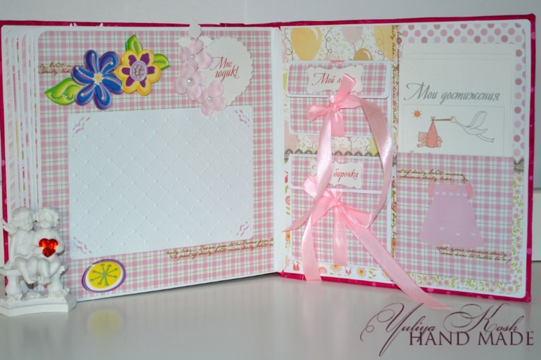 СкрапбукингМного говорить не буду....сделался на заказ альбом для девочки...просили много розового)))) Альбом с подобной бумагой я уже делала.......мне она так нравится...вот решила по работать с ней еще.....фоток сделала много....ну что то на этот раз я не довольна....сынок не дал .....ну вот что получилось))))