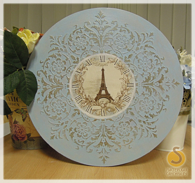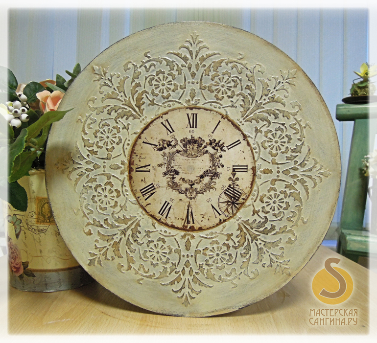 На МК Вас ждет работа с трафаретом, рельефной пастой, создание многотоновых потертостей. Работаем акриловыми красками, красками Deco legno Decape, медиумом (воски и свечи не используем). Объем на часах будет нанесен заранее, однако мы обязательно потренируемся в создании объема через трафарет. Заготовка на Ваш выбор: часы (диаметр 30 см) или шкатулка 12*12*5 см. Стоимость МК 1300р. Время работы примерно 5 часов. Мотивы как всегда на Ваш выбор. Находимся в шаговой доступности от метро Нагатинская. Все участники получат «памятки» с пошаговой инструкцией работы. В памятке будет оставлено место для записи ваших собственных заметок. Все материалы включены в стоимость. Приглашаю мастериц любого уровня.