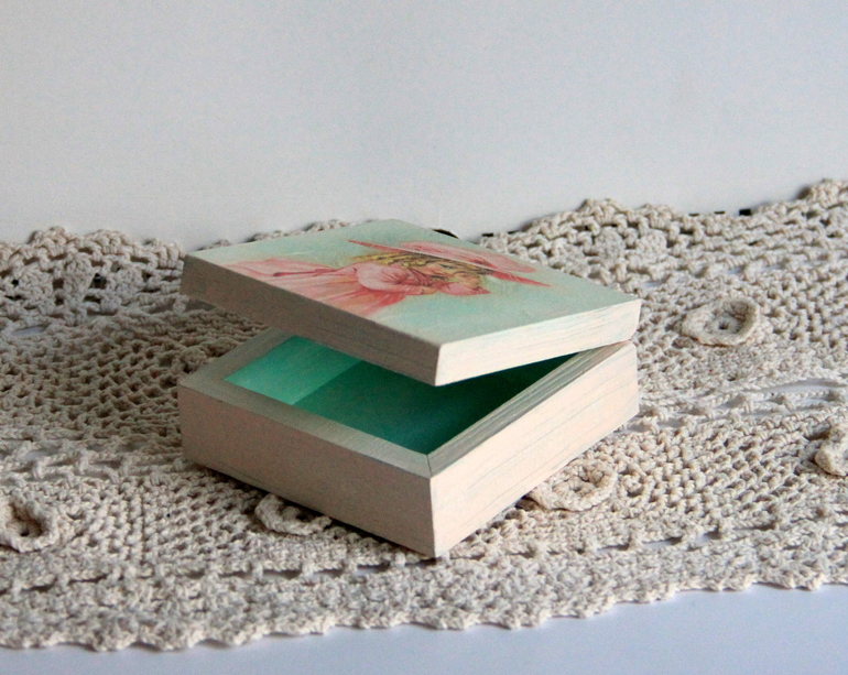 Детская шкатулочка очень понравилась — здорово обыграны цвета на внешних бортах и внутри шкатулки и сами тона цветов хорошо подобраны к мотиву!