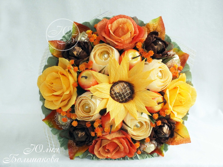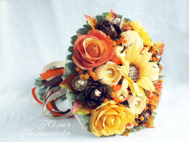 Хороши Юлия букетики! Очень четко прорисовывается твой стиль) форма роз очень удачна и нравятся твои контрастные осенние очень)