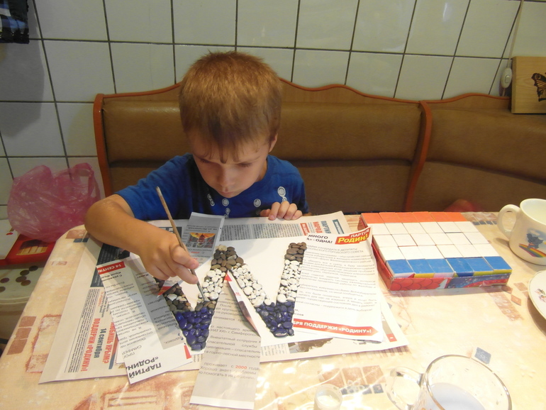Поделки с детками.В садике задали сделать аппликацию в виде любой буквы, аппликацию из чего сами захотите. Вот так мы захотели: