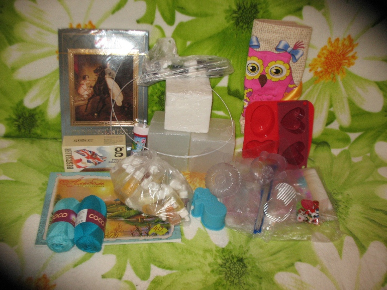 А ЭТО ГВОЗДЬ ПРОГРАММЫ, то есть обмена. Это все для мылка. Основа, отдушки, красители, формочки, упаковка. Мммммм....... наварю мыла теперь