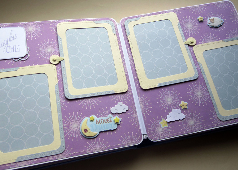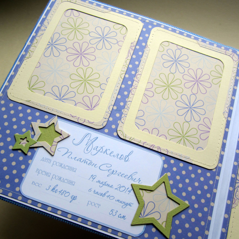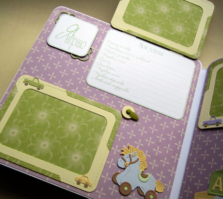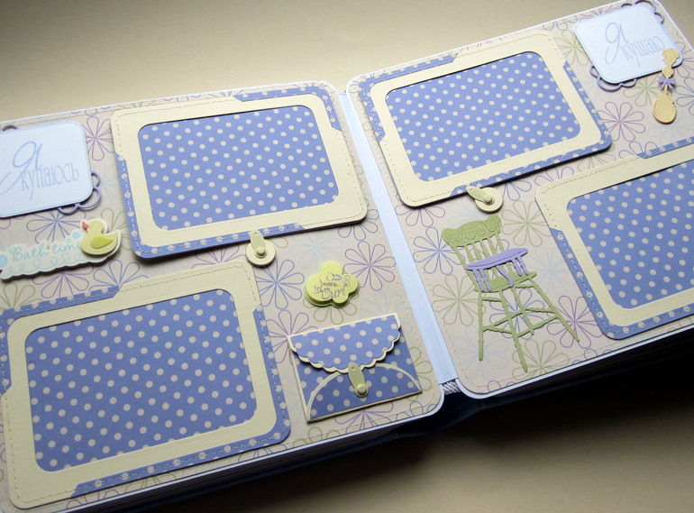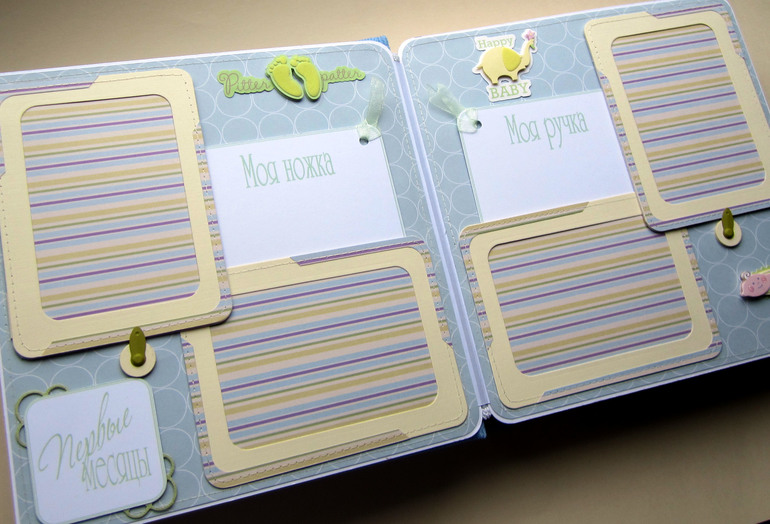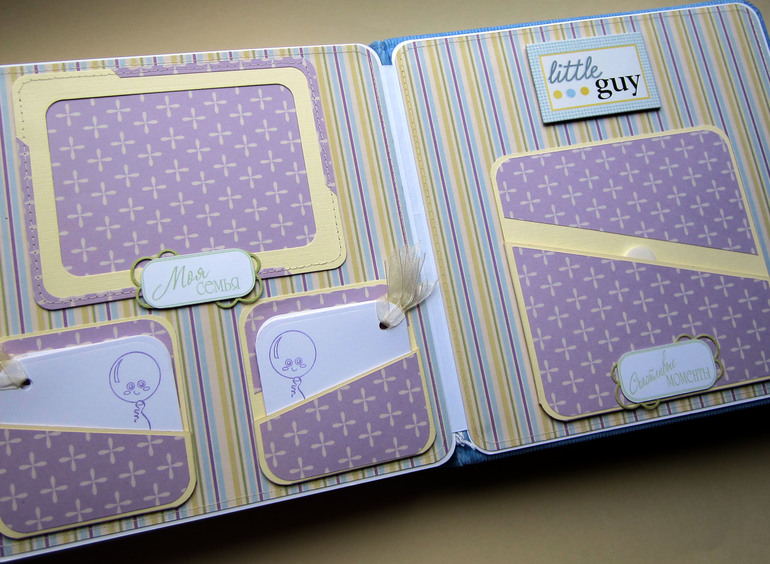 Хочу показать альбомчик для мальчика 21х21, 8 страниц, 9 разворотов, вмещает 52 фотки.