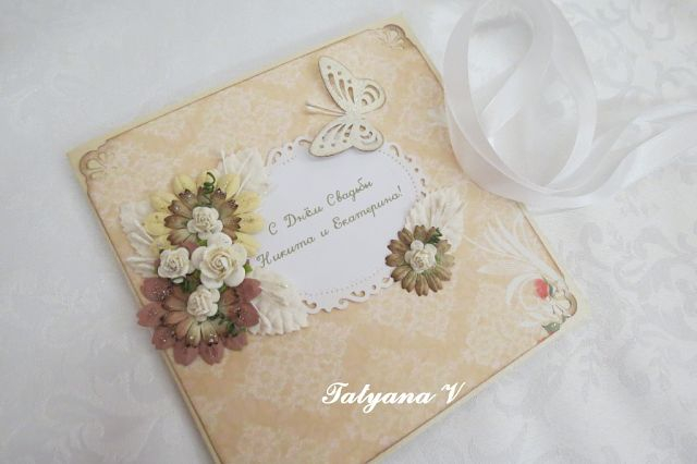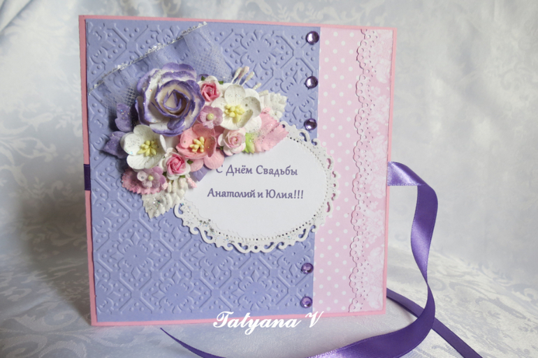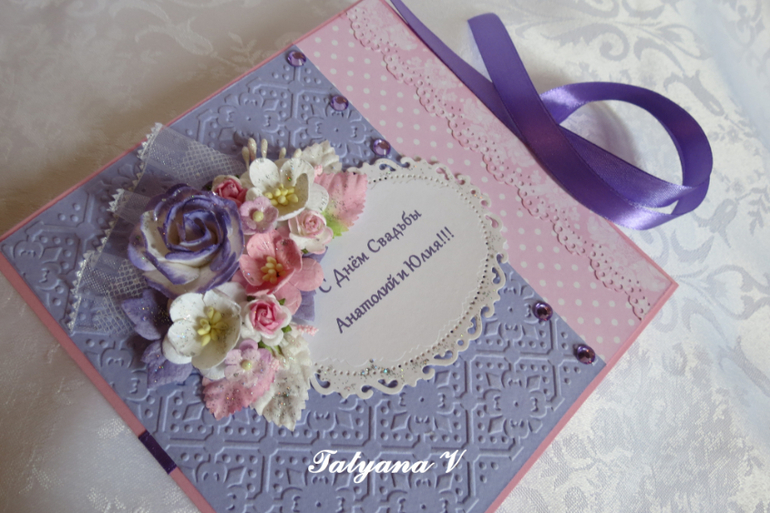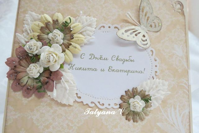 СкрапбукингОткрытки сделаны индивидуально, согласно всем пожеланиям заказчиков. Поздравления внутри открыток тоже прислали они. Я только все красиво оформила.