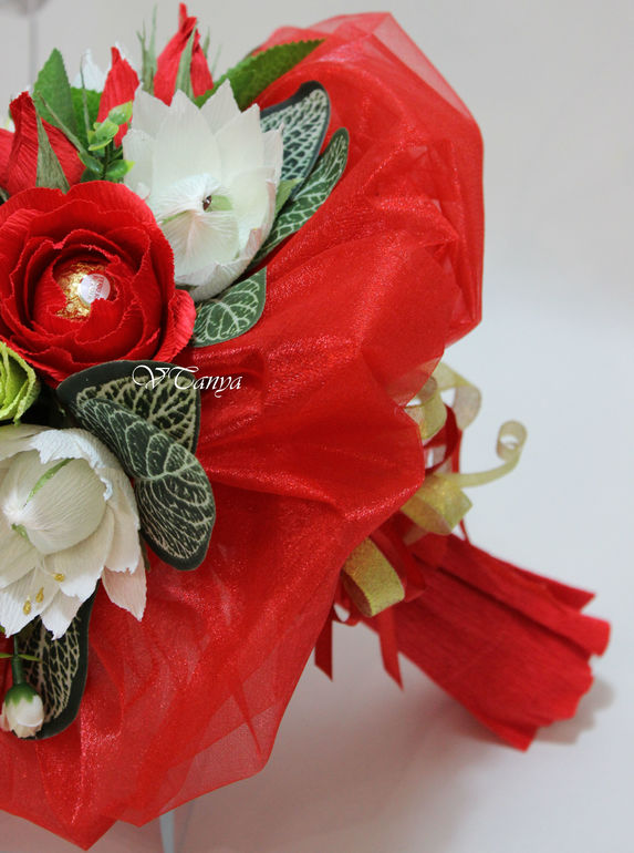 Это бывает))) я вот ко многим своим букетам равнодушна, потому что когда делаю, жду определенный результат, а выходит нечто другое, потому и бываю не довольна работой, и это часто, так что букет твой хорош и даже очень, просто ты ждала чего-то другого))))