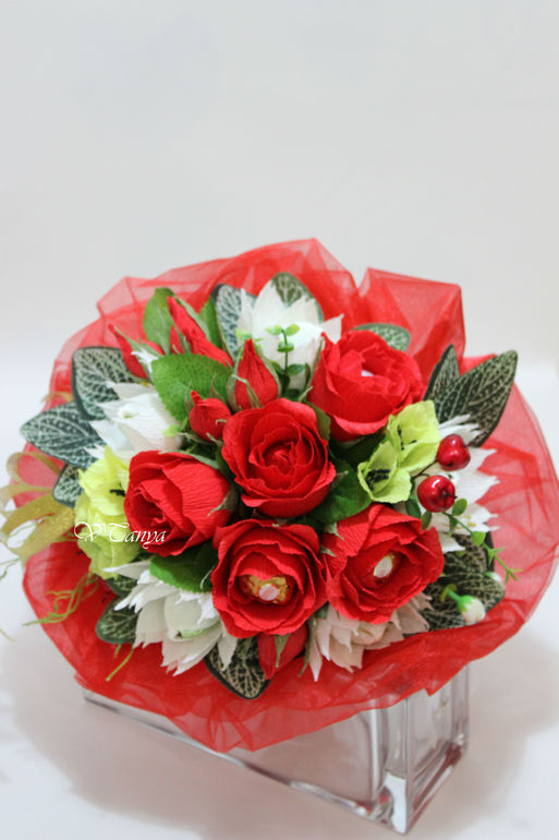 красота и вовсе не простенький-очень приятный букет,тычинки сами делали?