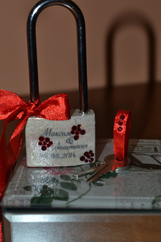 Был сделан на заказ для Максима и Анастасии:домашний очаг и замочек со стразами, именные бокалы с кристаллами Swarovski! Фото под катом)