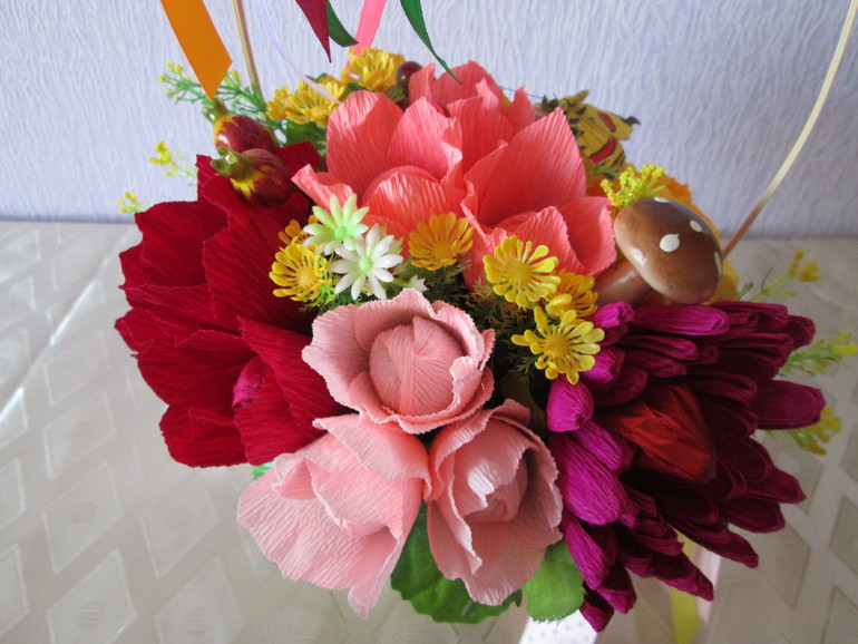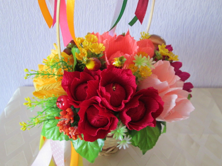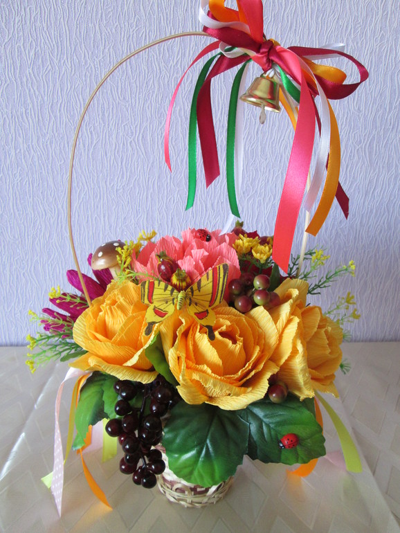 Красивая корзина получилась. Про ленты по бокам согласна — лишние, отвлекают.