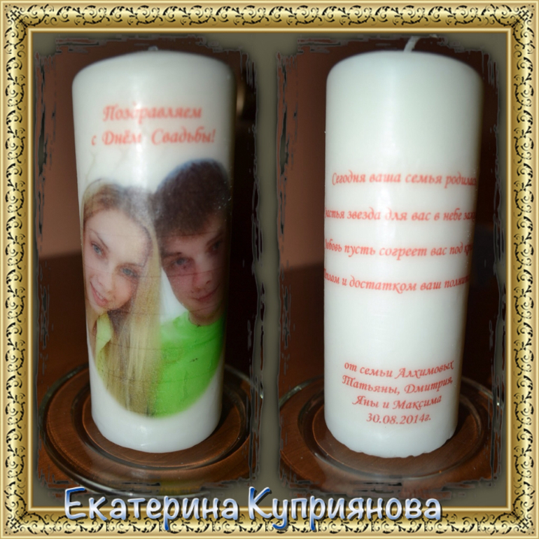 2. Свеча с фотографией молодоженов