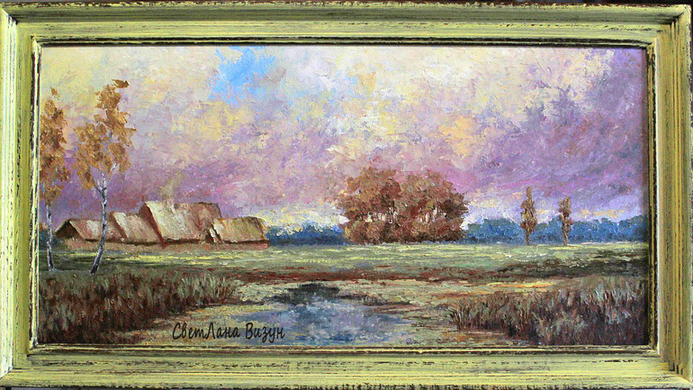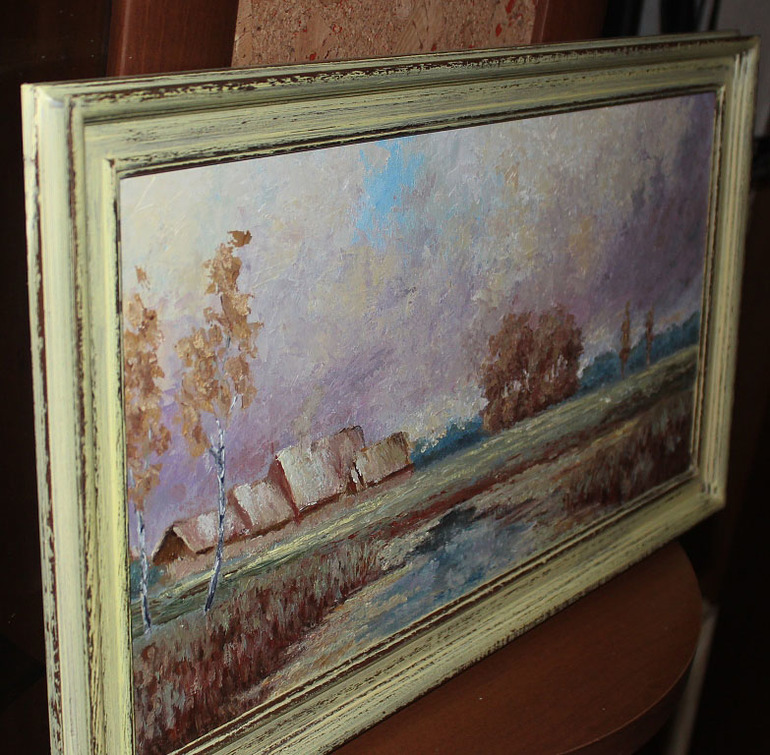 Живопись, точечная росписьКак же мне нравится мой последний пейзаж.. Да, вкусы у всех разные... у меня вкус не стандартный.. в этом я убедилась по последним отзывам на мои картины))) Ну да ладно, главное, что я в полном восторге и не могу молчать об этом!!!! также с любовью к этой картине я сделала деревянный багет, состарила его в цветах картины и он просто замечательно подчеркнул всю деликатность и трогательность пейзажа: