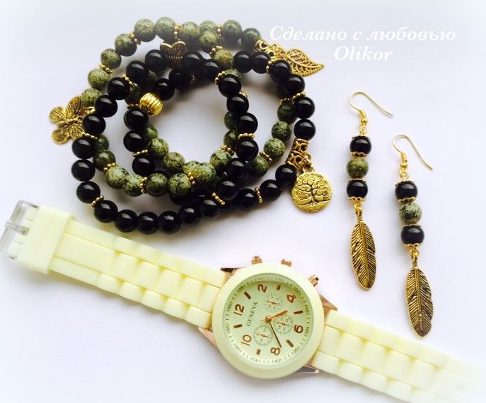 Бижутерия для слингомам. Слингобусы. Грызунки.Совершенно спонтанно родился этот комплект. Часы покупала совершенно для других камней, но взгляд упал на неприметные бусины змеевика, потом на черный агат и понеслось...