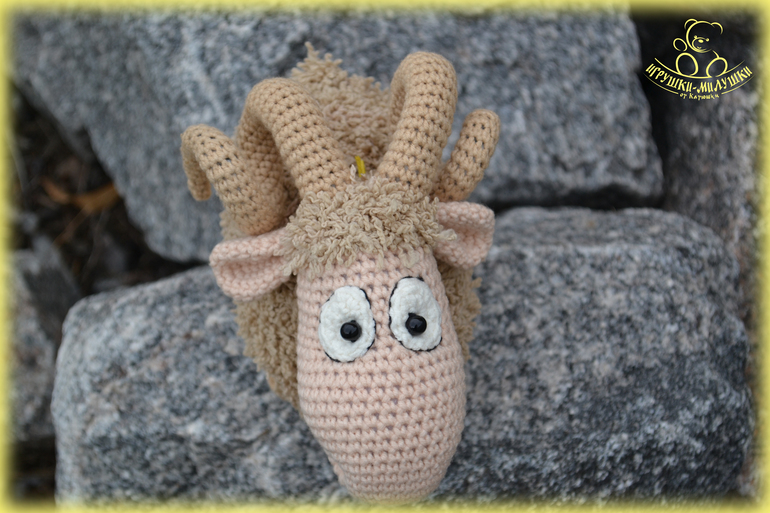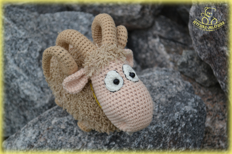 Баранчик связан по описанию Марины Борисовой, высота - 12,5см, длина - 17см.