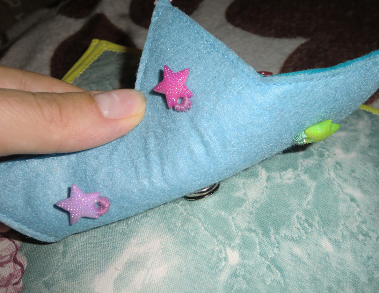 Маленькие звездочки тоже подходящих цветов, с петельками, бубенчиками и тоже одеваются на пуговки.