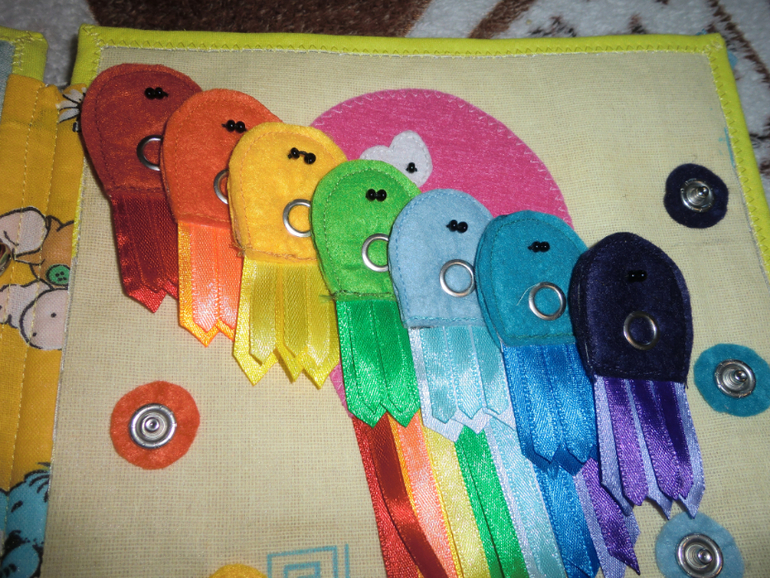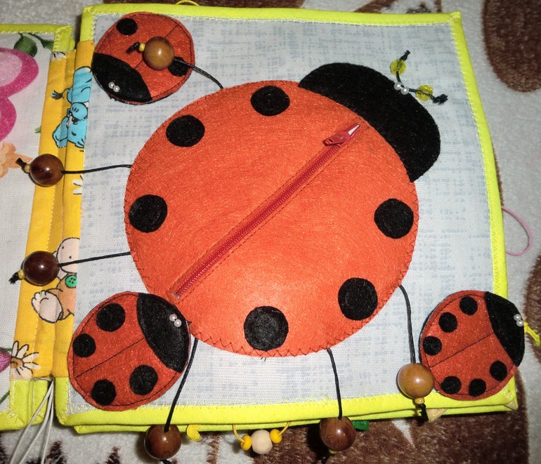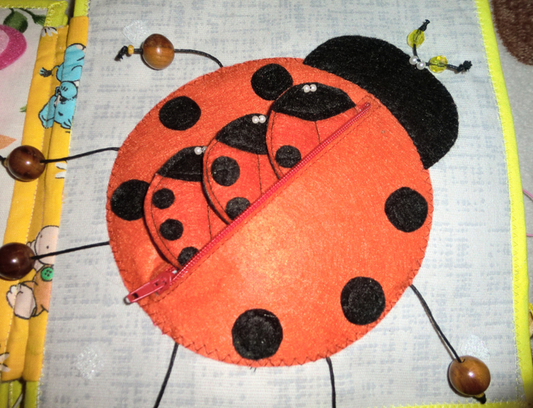 Детки на липучках с разным количеством точек. Прячутся в маму. Молния, деревянные бусины.