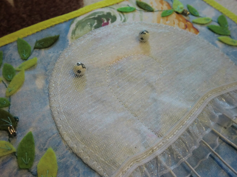И само тельце бабочки - пуговички, пайетки и объемные бусины.