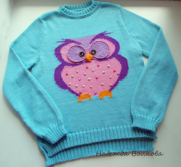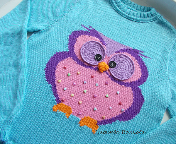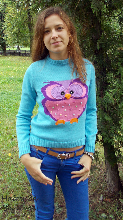 Шикарно! Надюшечка, когда же вы дышать успеваете, я уже не говорю про есть-пить-спать и остальное??? Вроде не так давно начали вязать на машине (или я раньше просто вас не видела), а уже миллион работ! Восторг и уважение! Совушка прекрасная, в голове у меня такая давно, но пока я думаю, вы уже воплощаете!