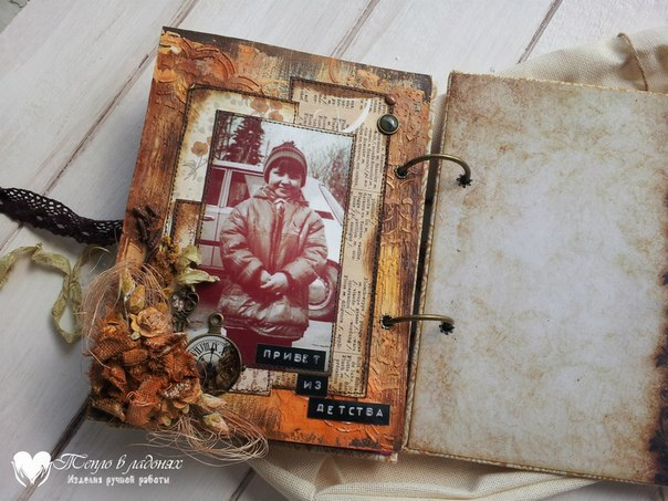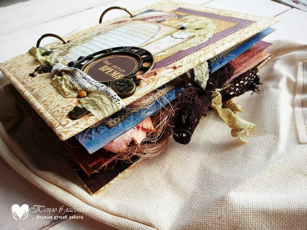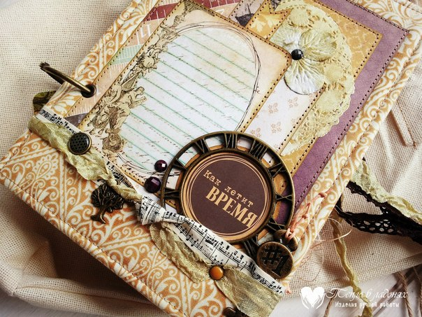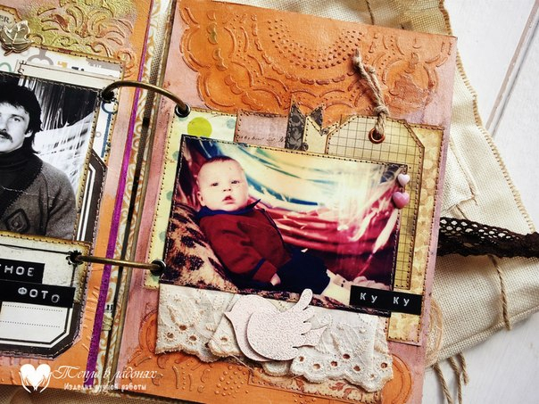 Размер альбомчика 14х20 см, обложка обтянута хлопком, внутри 7 страничек, 4 разворота. Самодельный фон, закрывается на ленты.