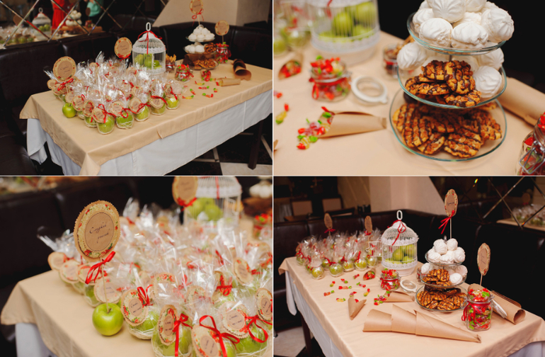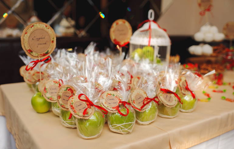 37 яблок, подарки гостям, обвернуты в целлофан, с бантиками и с этикетками собственного производства, в гамме задумки!!