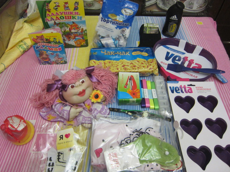 Сегодня на почте забрала я свою посылочку от замечательной ББшечки Альбина . Подарочки чудесные, нам очень понравились!Хорошая и душевная посылочка.Вот общий вид нашей красоты:
