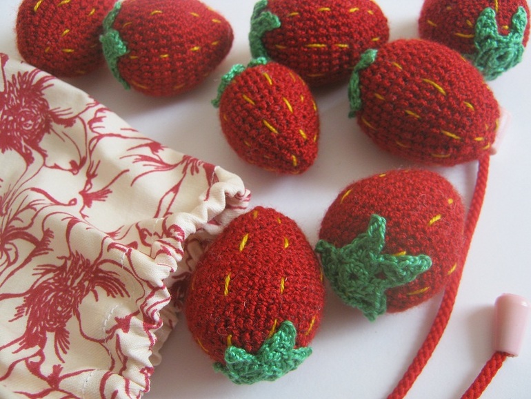 Схема приблизительная, у меня почему-то по ней не получается вязать, то возьму второй крючок, то петли на глаз в самом конце убавляю. Некоторые клубнички вязала из 48 петель. Каждый раз по-разному.
