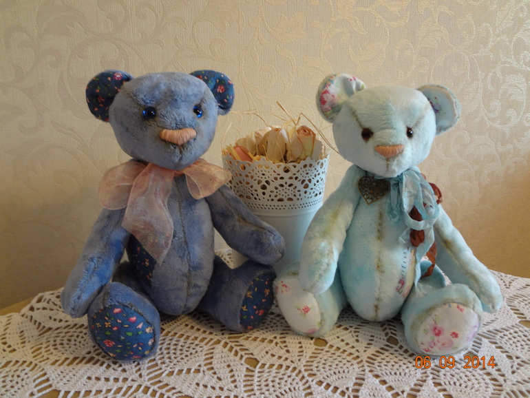 Игрушечный мир - животныеСшила еще одного мишку,братишку для Тишки. Тимоша сшит из мягкого плюша,голова на шплинтовом креплении,ручки и ножки на пуговичном. Глазки стеклянные.Мишка ростиком 30см .