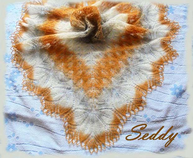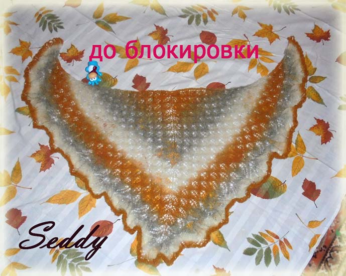 связала заявленные уже 12 черенков в описании, коротка шаль!!! ХМ! ну ладно, вяжу дальше, связала аж 18 черенков, и тут в онлайне вяжут Харуни - решила остановиться на этом (спасибо Елене за советы), а ведь хотела 20 или 22 черенка связать)))) но в итоге, оказалось, что я неправильно считаю черенки и распустила один черенок - итого у меня 17 черенков...