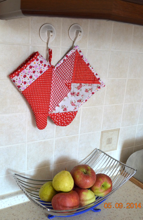 А вот и прихватки, фото из далека, что бы сильно Вас не пугать. Если хорошенько присмотреться, то видно что ткань полиняла
