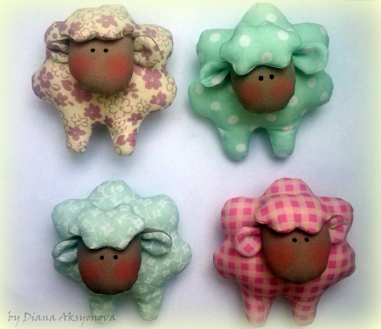 По-моему только ленивый не сшил еще этих овечек))) Ну и я туда же) Магниты, высота овечки 9 см. Больше не буду таких шить, мне не интересно...А эти конечно глаз радуют. веселенькие)