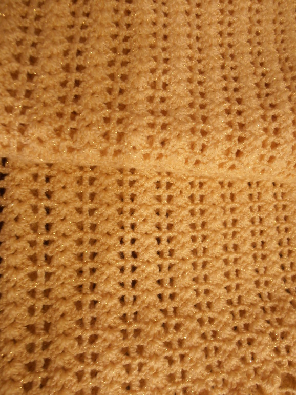 Вязание спицамиУже давно связался вот такой шарф потрясающе нежного цвета. Пряжа Пехорка "Мерцающая", с тончайшей ниточкой золотого люрекса. Длина шарфа 175 см без бахромы.
