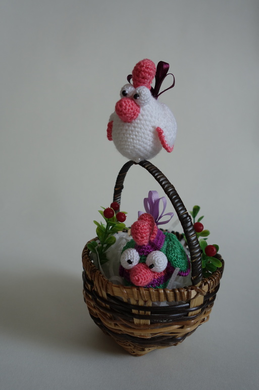 Дальше детальки, если интересно:) Девушка в сарафане никак не хотела ни с чем вязаться, пока ей не придумались куры в корзинку, как только деушка "окурилась"-всё стало на свои места:)