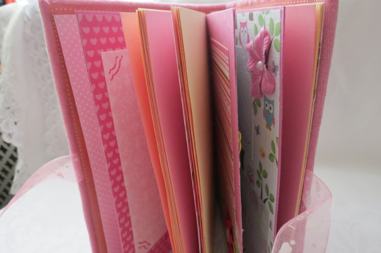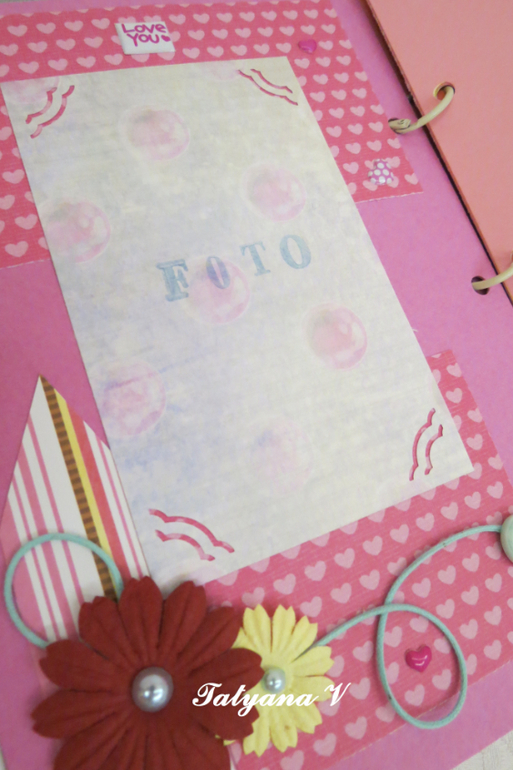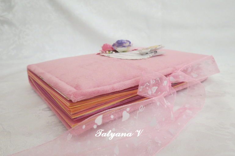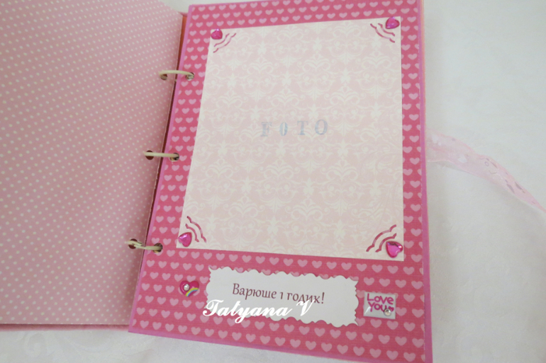 СкрапбукингВ продолжении прошлых постов, хочу показать вам какая получилась у меня книжка для пожеланий. Заказчица просила сделать несколько страниц под фото. В результате у меня получился такой мини альбом. Обложку сделала цельную мягкую такую же как на сокровищнице. А вот внутри листочки на кольцах. Завязывается все на ленту.Ну и конечно все в розовом цвете.