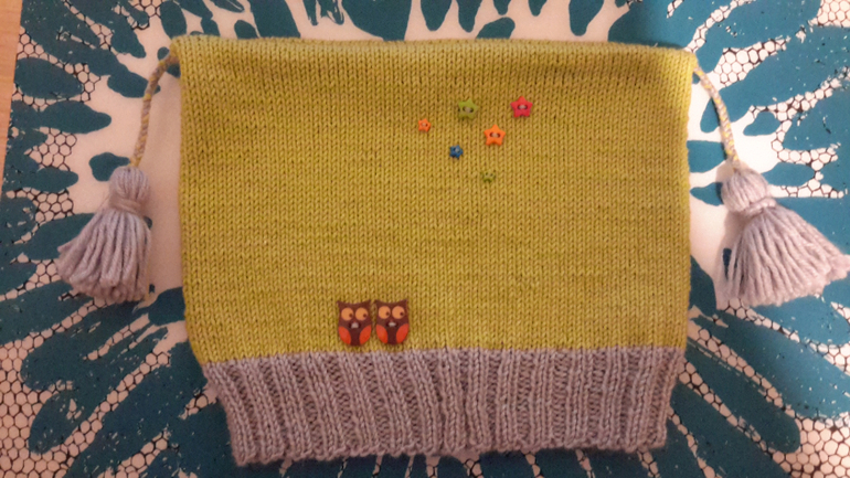 Сын не дает на себе сфотографировать - сразу пытается отнять у меня планшет (а это уже чревато истерикой после игр), поэтому просто фото шапочки без хозяина.